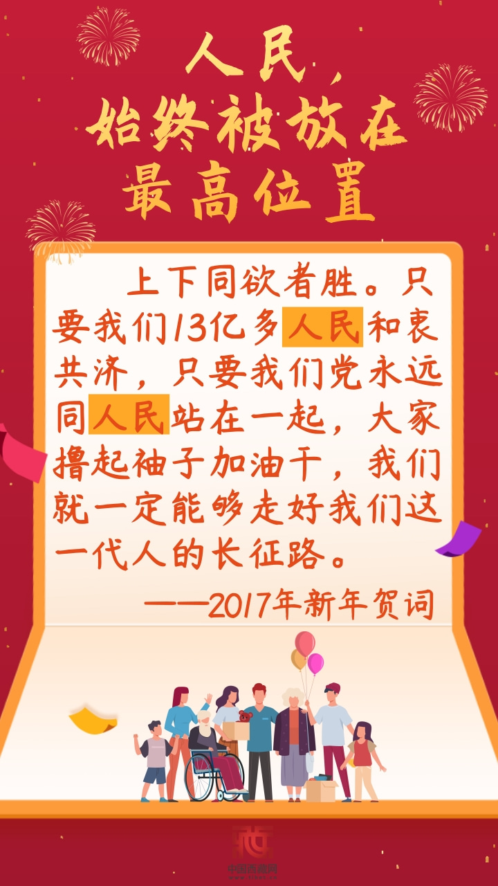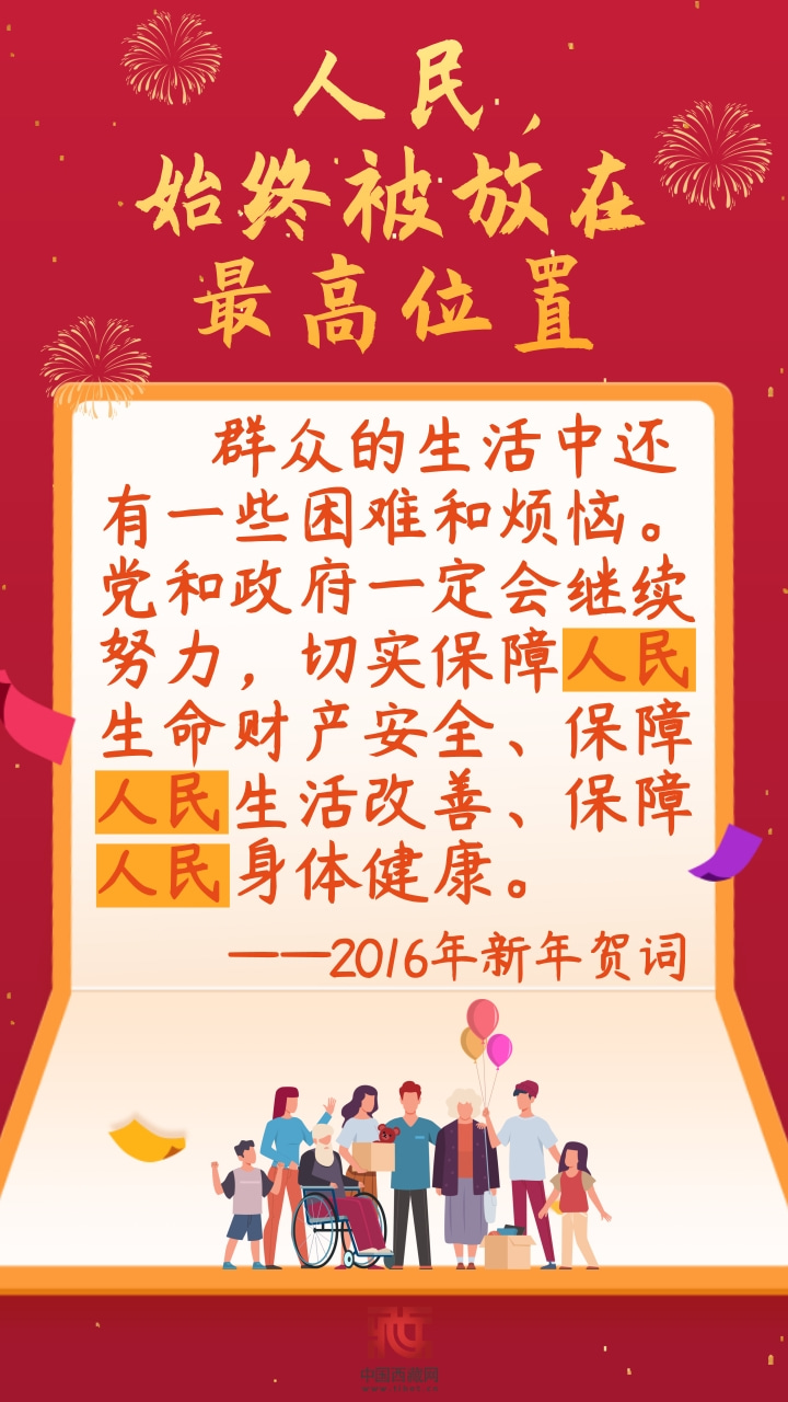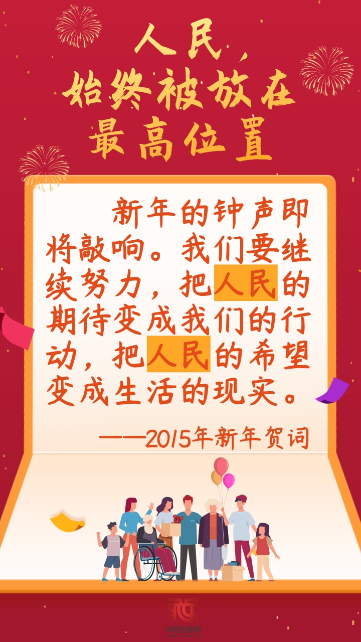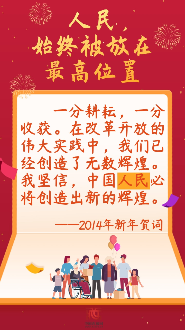 編者按:自2014年新年起,習近平主席已連續(xù)九年發(fā)表新年賀詞。人民群眾的生活冷暖始終是習近平主席的牽掛,歷次新年賀詞中都有明顯體現(xiàn),既展示了大國領袖的博大胸襟,也凸顯出人民領袖的為民情懷。(中國西藏網(wǎng) 編輯/孫健 制作/許娜)