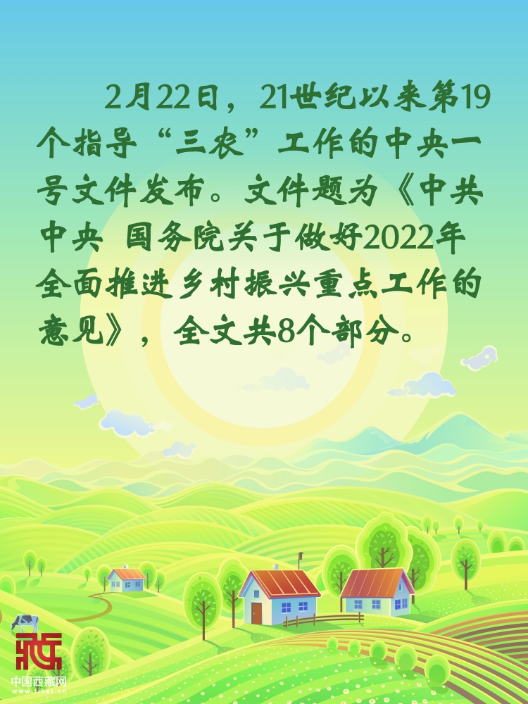 2月22日,21世紀(jì)以來第19個(gè)指導(dǎo)“三農(nóng)”工作的中央一號(hào)文件發(fā)布。文件題為《中共中央 國務(wù)院關(guān)于做好2022年全面推進(jìn)鄉(xiāng)村振興重點(diǎn)工作的意見》,全文共8個(gè)部分。[詳細(xì)] -