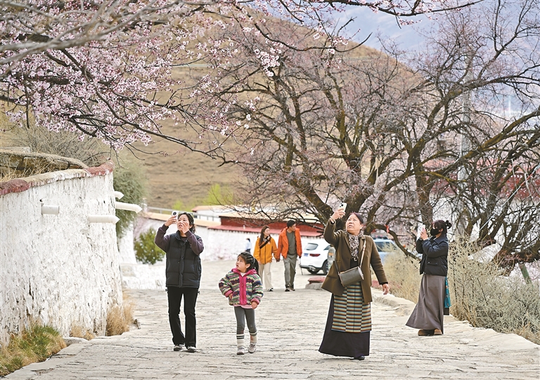 11日,“大美青海·幸福西藏”桃花季旅游專列緩緩駛?cè)肓种セ疖囌荆?30余名游客即將在林芝開(kāi)啟賞花之旅。