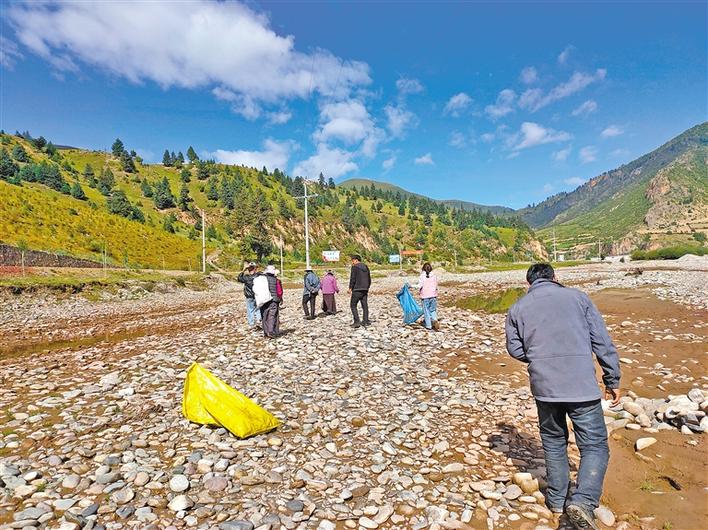 圖為昌都市達(dá)日通村村民在撿拾垃圾。記者 周婷婷 攝