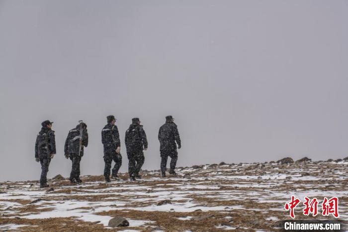 圖為可可西里巡山隊(duì)在野外巡護(hù)??煽晌骼锕芾硖幑﹫D