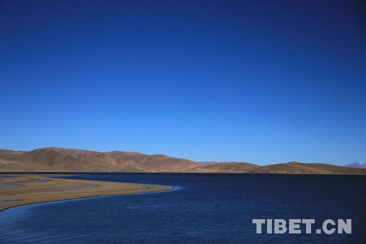 圖為一只鳥兒在納木措湖畔水域覓食 攝影:王媛媛