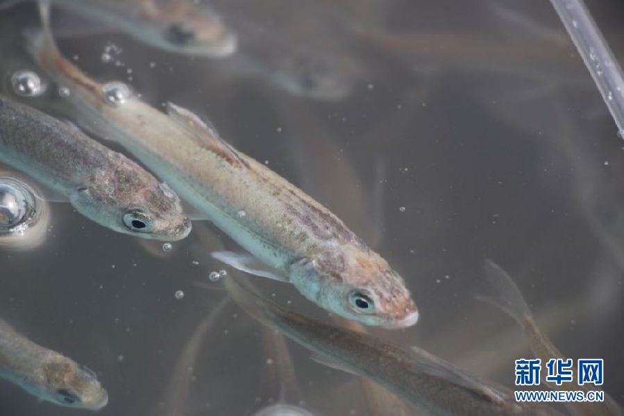 這是青海湖裸鯉魚苗(6月6日攝)。新華社記者 周喆 攝
