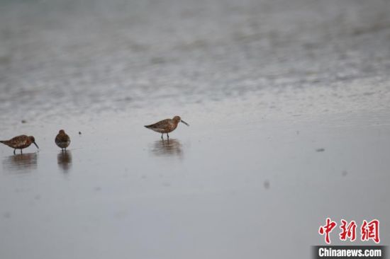 圖為彎嘴濱鷸??婶斂撕?托素湖自然保護(hù)區(qū)服務(wù)中心供圖
