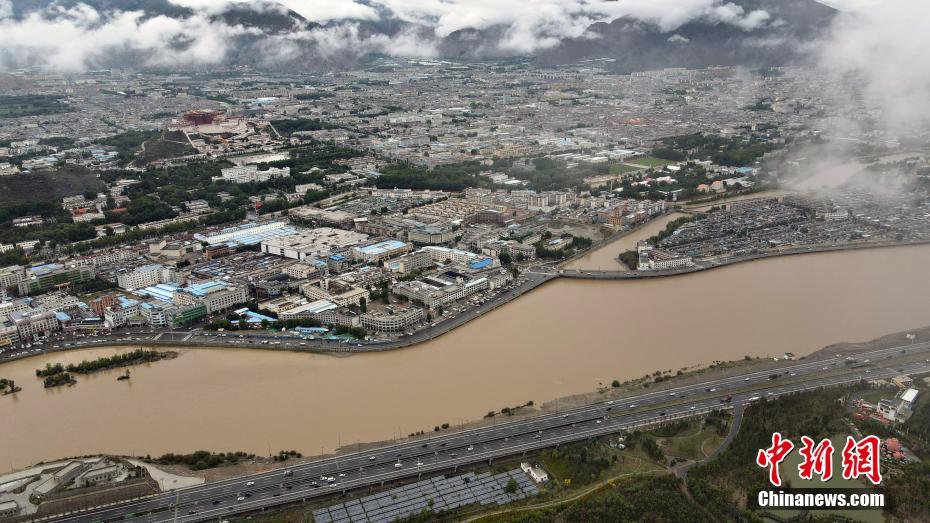 7月20日,受降雨影響,拉薩河中游水位持續(xù)上漲。西藏自治區(qū)氣象臺7月19日發(fā)布今年進入主汛期以來的第一次強降雨藍(lán)色預(yù)警,受高原切變線和暖濕氣流影響,19日20時至20日20時,西藏林芝有中到大雨,部分鄉(xiāng)鎮(zhèn)有大到暴雨;拉薩、山南南部、那曲東部、昌都北部和日喀則南部有小到中雨,部分地方有大雨。中新社記者 江飛波 攝