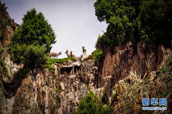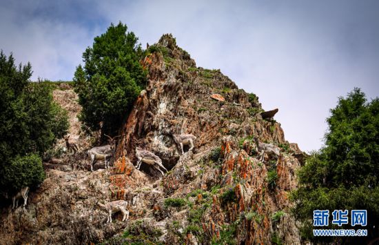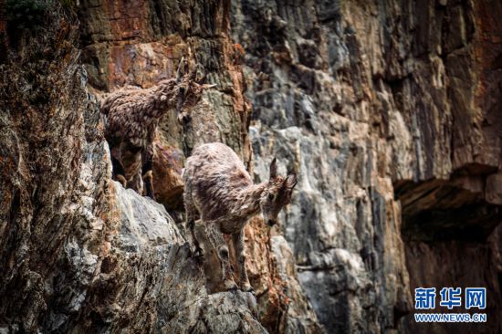 一群巖羊在巖壁上嬉戲。新華網(wǎng) 宋忠勇 攝