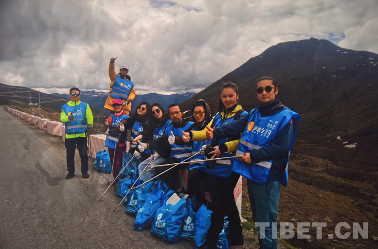 圖為“美麗公約擦亮天路”公益活動志愿者在西藏自治區(qū)開展撿拾垃圾活動 (資料圖) 翻拍:王媛媛