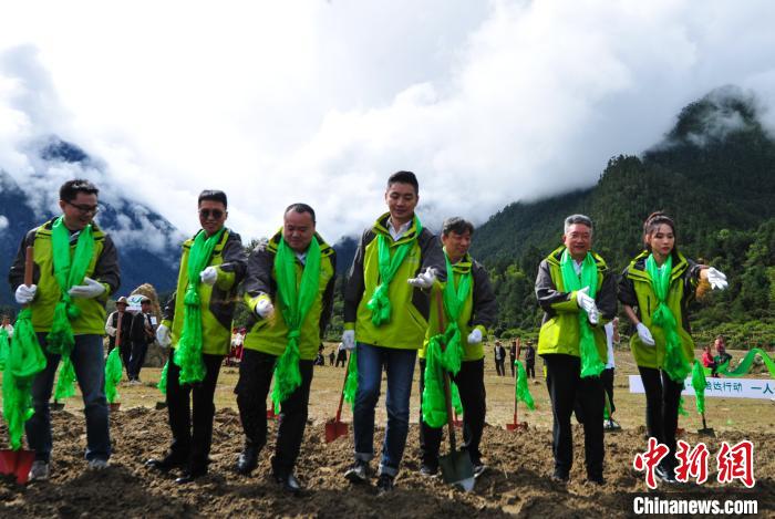 圖為活動參與者在西藏林芝米林縣德吉新村播撒草籽?!垈?攝