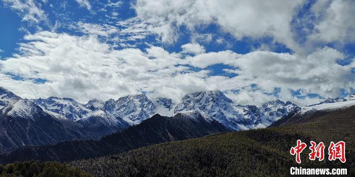 圖為銀白色白馬雪山與綠色植被勾勒生態(tài)畫卷。 張?zhí)砀!z