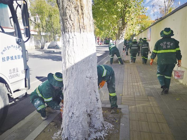 拉薩市區(qū)近4萬(wàn)棵樹(shù)木涂白換“冬裝”,下一步將開(kāi)展冬灌、覆土防寒等工作。