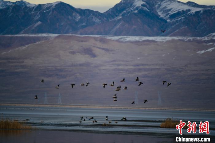 都蘭湖國家濕地公園內(nèi),上萬只野生鳥類越冬。 郭曲太 攝