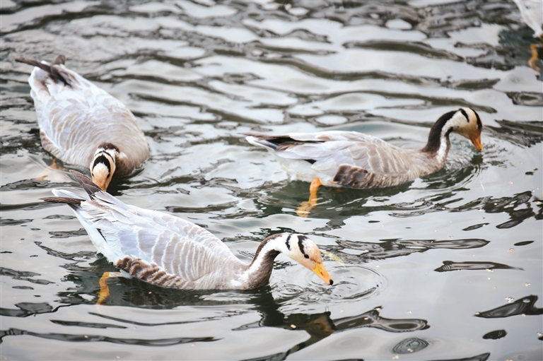 宗角祿康公園里的候鳥(niǎo)正在覓食。(本版圖片由拉薩融媒視覺(jué)組攝)