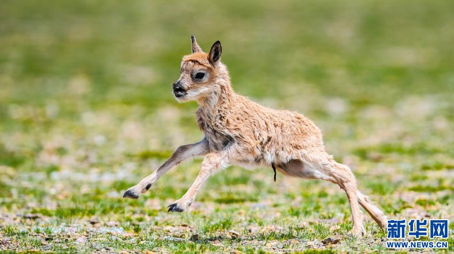 在西藏那曲市申扎縣境內(nèi)拍攝的藏羚羊幼崽(2017年6月24日攝)。新華社記者 普布扎西 攝