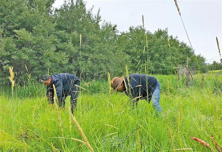 圖為工作人員收割沙棘林旁的雜草。袁海霞 鄭璐 攝
