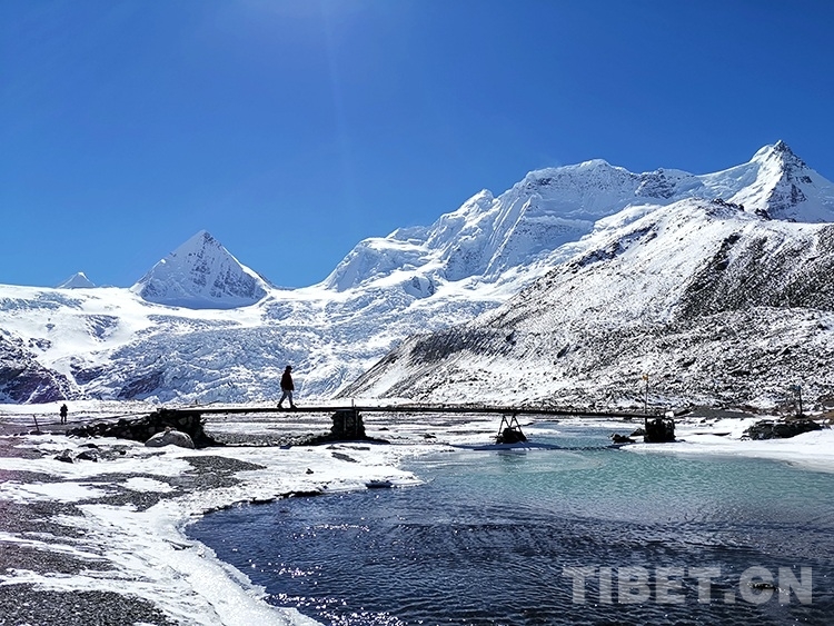 薩普冰川下守護(hù)游客的大山人