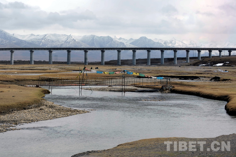 乘坐“天路”列車,通過藏北高原時(shí),我喜歡從車窗遠(yuǎn)望。因?yàn)檫@片鐵路依傍著青藏公路的廣袤高原草甸地區(qū),不僅能看見藏羚羊、藏原羚、藏野驢等野生動(dòng)物;還能看到清水河、楚瑪爾河、秀水河、長江源等江河上的特大橋。這些蜿蜒而上的特大橋以橋代路,在很好地保護(hù)凍土和草原綠地的同時(shí),也為藏羚羊等野生動(dòng)物在這一帶棲息和遷徙提供了保障通道。