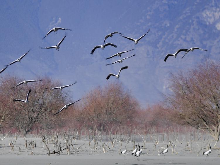冬季,成群結(jié)隊的黑頸鶴遷徙到西藏林芝市,雅魯藏布江及江畔的農(nóng)田成了它們越冬的樂園。[詳細] -