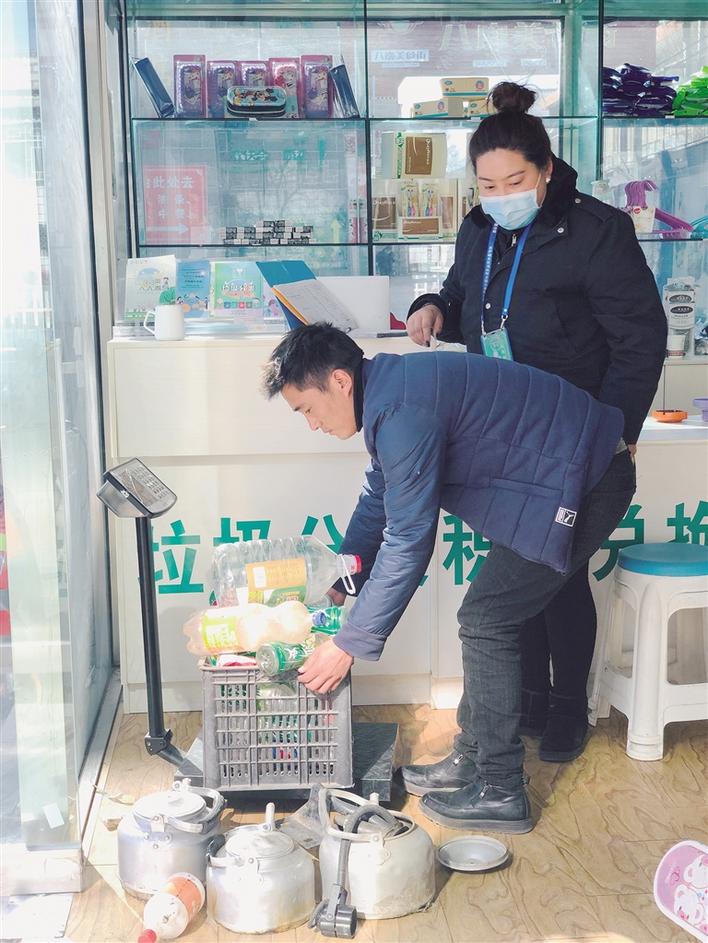 “你看,這些洗潔精、洗衣粉、毛巾、牙膏等生活用品都是我女兒用孫子、孫女寫完的作業(yè)本、家里的飲料瓶、紙箱子等生活垃圾兌換回來的,垃圾變廢為寶為家里減輕了經(jīng)濟(jì)壓力?,F(xiàn)在,我們?nèi)胰硕拣B(yǎng)成了垃圾分類的好習(xí)慣,主動(dòng)將自家的垃圾進(jìn)行分類,統(tǒng)一存放在家里的垃圾分類儲(chǔ)存處。”居住在娘熱路安居苑內(nèi)的措姆老人高興地說。
