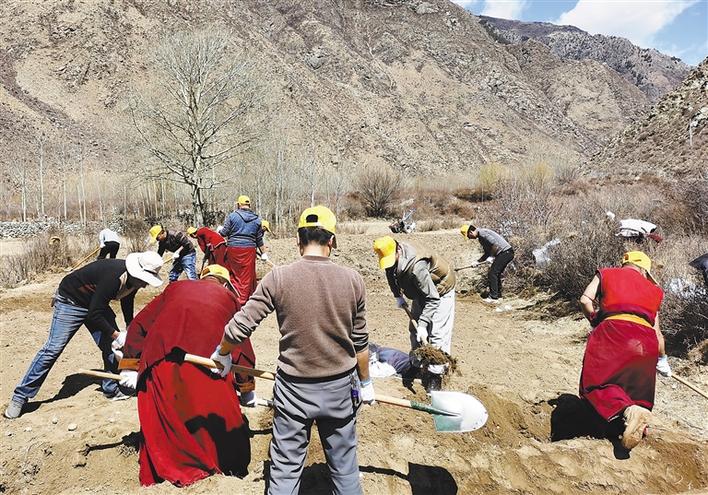 日前,加查縣瓊果杰寺管會以“助力春耕生產,共建美麗家園”為主題,組織寺管會工作人員和僧人赴加查鎮(zhèn)扎西定崗村與群眾一起進行春耕生產。