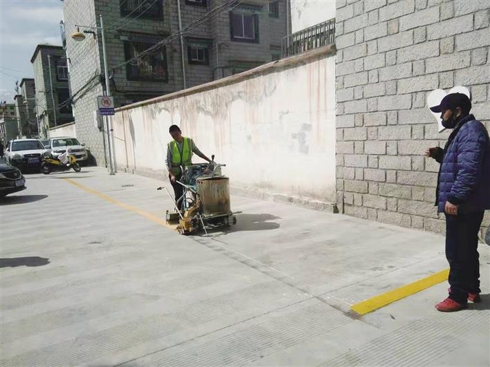 扎細新村社區(qū)路面改造后施劃停車位。