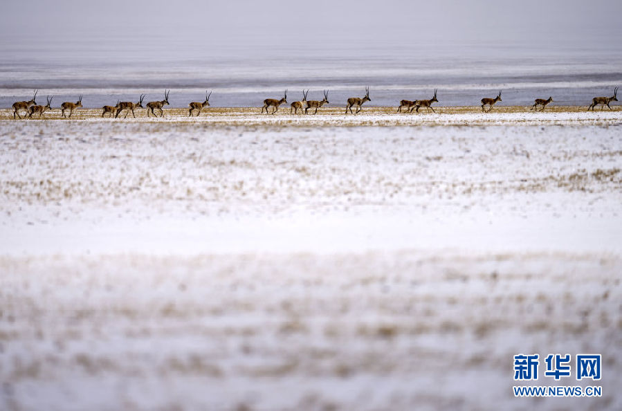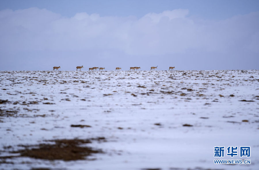 近日,可可西里迎來(lái)降雪,大量藏羚羊匯聚在可可西里五道梁地區(qū),踏上遷徙之路。