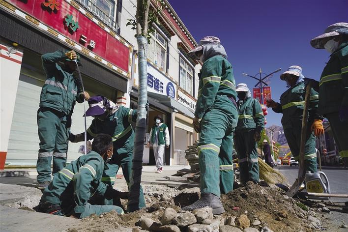“為了不影響道路交通,我們每天晚上加班加點挖坑、拔樹,工作到凌晨三四點,白天種樹、填坑,確保盡快完成種植工作。”達(dá)娃說。