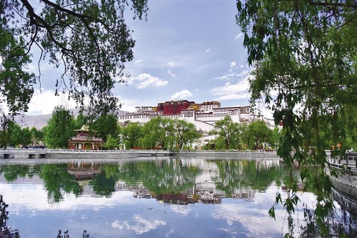 記者來到布達(dá)拉宮廣場,看到有很多游客在湖邊拍照,湖面清澈得像一面鏡子,倒映著布達(dá)拉宮。這么美的畫面,小編也忍不住用相機(jī)記錄下來與大家分享。