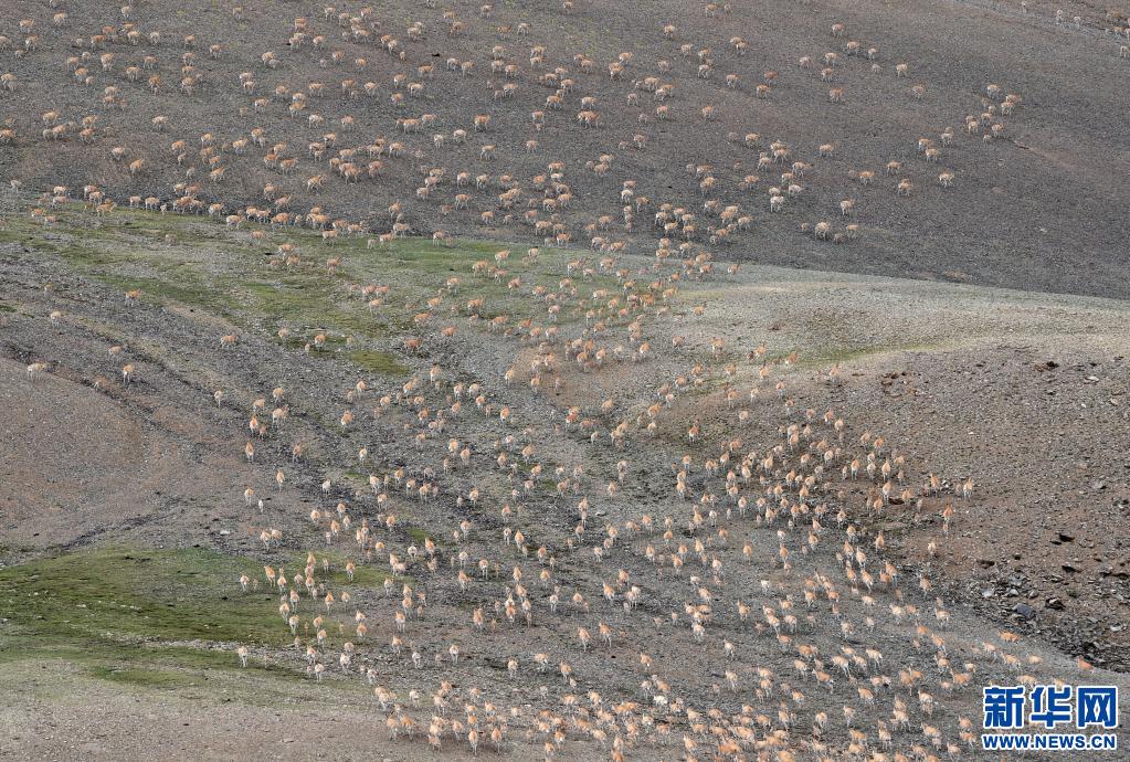 遷徙中的藏羚羊群。(新華社記者 覺果 攝)