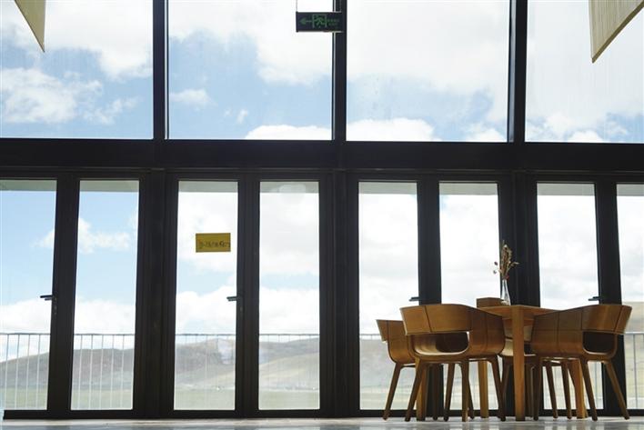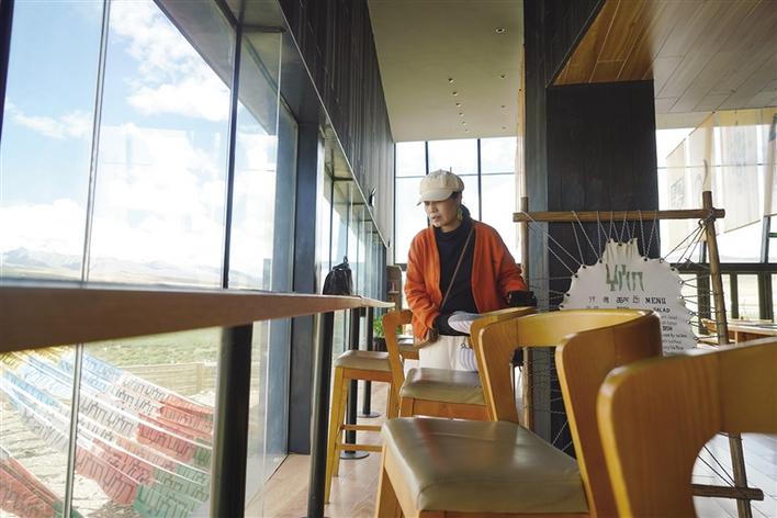 從正門進(jìn)入,穿過牦牛文化空間走廊,便可到能夠以最佳視角欣賞念青唐古拉山的VR觀景臺(tái)。緊鄰觀景臺(tái)右側(cè),是一間擺放當(dāng)?shù)匚膭?chuàng)產(chǎn)品、各類書籍的觀景咖啡廳。該咖啡廳的兩面墻體設(shè)計(jì)為超大落地窗,在此休息的游客可以邊品嘗咖啡,邊欣賞念青唐古拉山及拉多草原的美景。走進(jìn)咖啡廳,記者看到不少在這里休息的游客都在低頭寫著什么,經(jīng)咖啡廳負(fù)責(zé)人介紹:“這些游客是在寫明信片,我們這里不僅提供餐飲,還提供印有本地風(fēng)景的明信片,并同中國(guó)郵政合作,幫助游客按時(shí)將明信片寄到他們的親朋好友手中,讓游客們的旅途變得更有意義。”