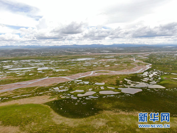這是7月23日拍攝的長江源地區(qū)的查旦濕地(無人機照片)。新華社記者 張龍 攝