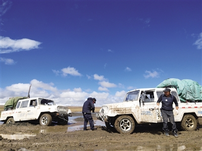 布周:我感覺這幾年巡山的難度越來越大,尤其是5月-10月間。全球氣候變暖,降雨量增加,凍土層易融化形成爛泥灘,進(jìn)山就變得困難重重,過去陷車挖到1米深就能見到凍土,現(xiàn)在要挖到1.5到2米深。我們只能多帶麻袋裝上土,挖到一定程度就開始墊麻袋。巡山的車用的是皮卡和北汽戰(zhàn)旗,車身輕,比較容易抬出來。