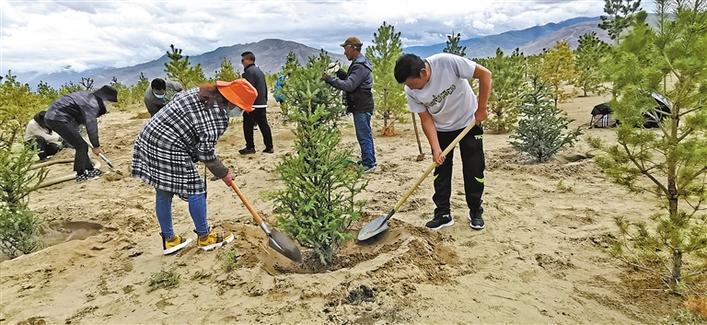 圖為山南市市直機(jī)關(guān)單位干部職工在植樹。記者 史金茹 攝
