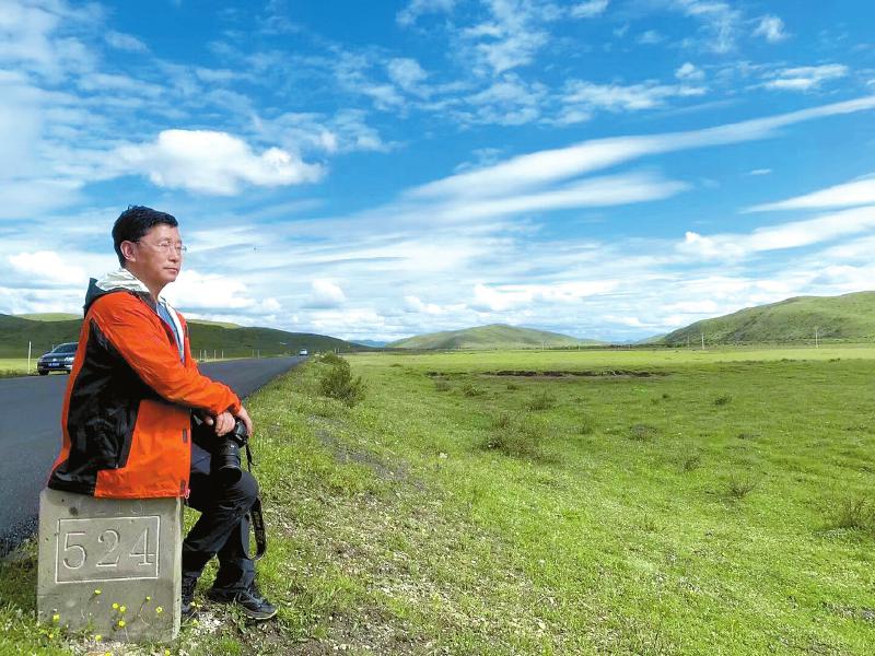 2019年,阿來(lái)60歲時(shí)重新漫游若爾蓋大草原。四川日?qǐng)?bào)全媒體記者 肖姍姍 攝
