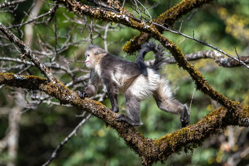 滇金絲猴分布在我國喜馬拉雅山南緣橫斷山系的云嶺山脈,金沙江、瀾滄江之間面積約2萬平方公里的區(qū)域內(nèi)。這些“雪山精靈”長年生活在人跡罕至的高山地帶,堪稱世界上除人類以外棲息海拔最高的靈長類動物。