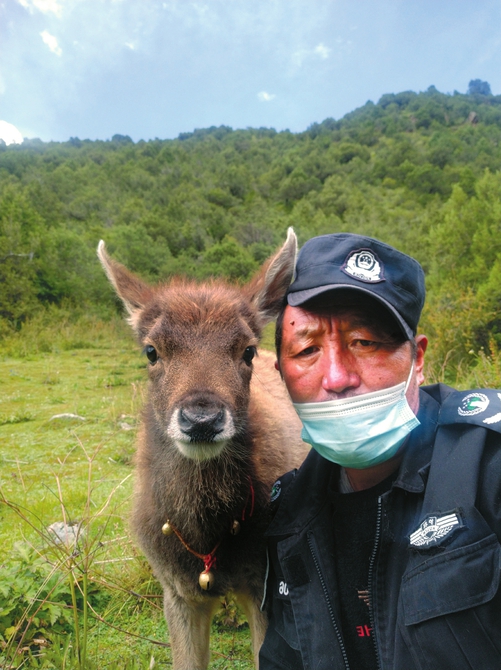 護(hù)林員多加和白唇鹿。