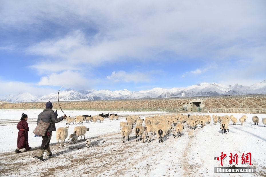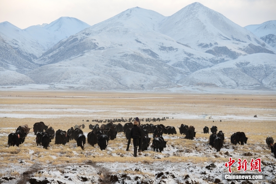 1月27日,當(dāng)雄縣龍仁鄉(xiāng)烏達(dá)村牧民在雪中放牧。當(dāng)雄縣位于西藏自治區(qū)拉薩市北部,距拉薩市區(qū)170公里?!爱?dāng)雄”,藏語意為“天選牧場(chǎng)”,平均海拔約4200米,草場(chǎng)廣闊,土地肥沃。 中新社記者 貢嘎來松 攝