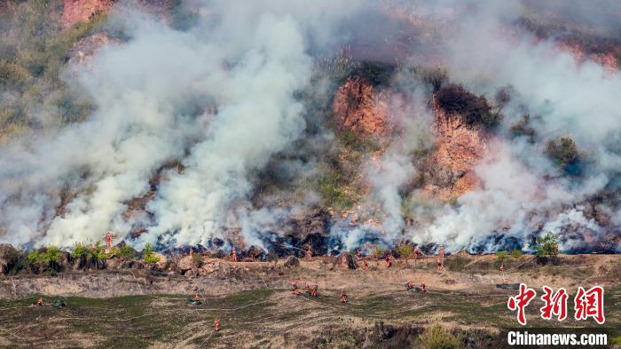 圖為3月2日,云南森林草原火災(zāi)應(yīng)急處置聯(lián)合實戰(zhàn)演練現(xiàn)場?!≡颇鲜∩窒揽傟?攝