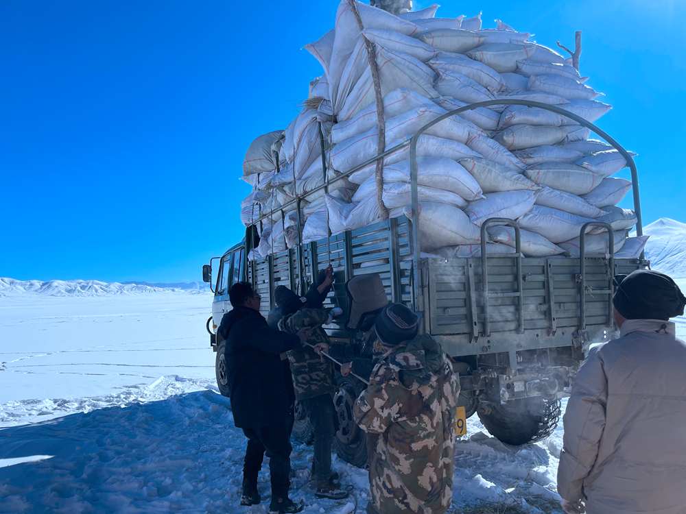 改則縣林草局工作人員把草料送到管護站,管理員們再把這些草料送到藏羚羊棲息比較多的地方。于是,接下來的兩天,工作人員們就一直在這片廣袤的草場上撒布草料,希望幫助藏羚羊們度過這個格外寒冷的冬天。前前后后,半個月下來,改則縣的工作人員撒出去十幾噸的草料,幫助很多藏羚羊度過了這個缺少食物的冬天。在改則縣,23個管護站,二百多名管護員,看管著十萬多平方公里的草場,他們對于轄區(qū)的草木生靈、萬水千山都很是熟悉。哪里常棲息著什么動物,他們多是信手拈來。