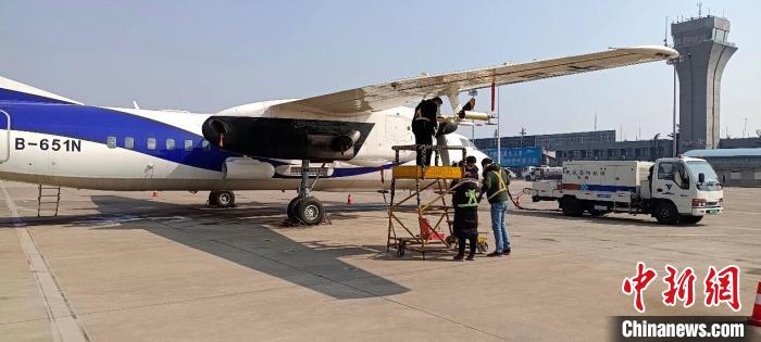 圖為國(guó)家增雨飛機(jī)新舟60(B-651N)在洛陽機(jī)場(chǎng)開展機(jī)載設(shè)備維護(hù)及任務(wù)系統(tǒng)升級(jí)工作。 甘肅省氣象局供圖