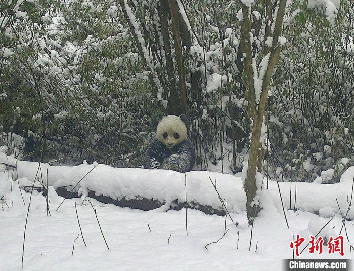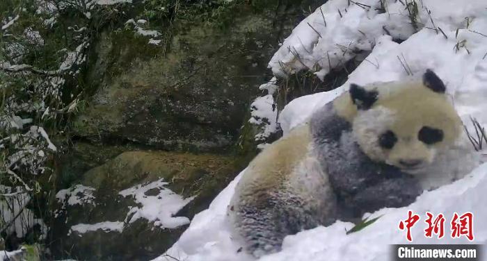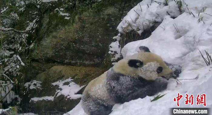 四川平武拍攝到野生大熊貓雪地撒歡畫(huà)面