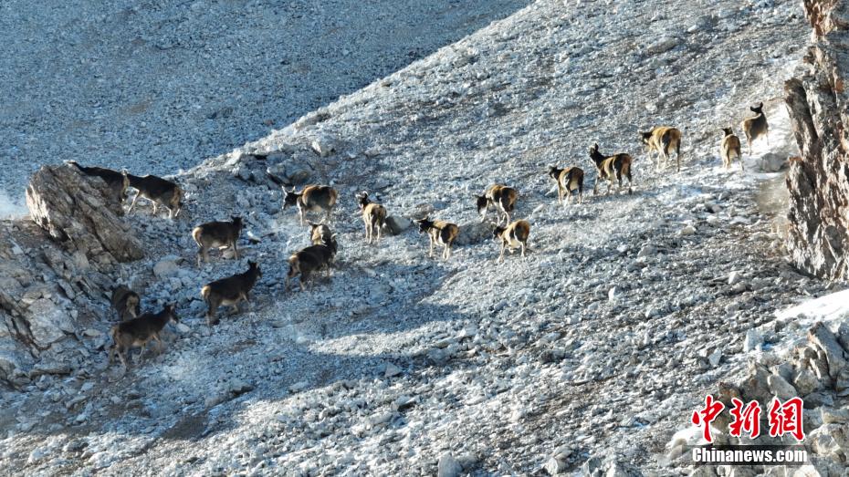 國家一級保護(hù)動物白唇鹿“成群結(jié)隊”奔跑在祁連山