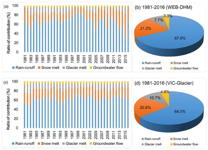 王磊表示,依托監(jiān)測網(wǎng)絡和其他多源數(shù)據(jù),研究團隊生成了1981-2019年這38年內(nèi)雅魯藏布江流域高時空分辨率降水數(shù)據(jù),在此基礎上進一步通過對比、綜合主流冰凍圈水文模型的徑流組分模擬,研究得出的結(jié)果顯示,雅魯藏布江流域(奴下水文站以上)新的降雨、融雪、冰川融化和地下水補給分別占總徑流的66%、21%、9%和4%。
