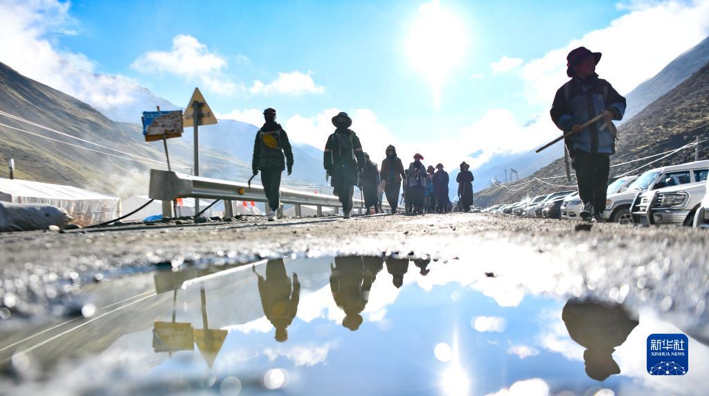 清晨,西藏那曲市比如縣良曲鄉(xiāng)然木塘村蟲草采集點的人們統(tǒng)一前往山上采集蟲草(5月26日攝)。新華社記者 姜帆 攝