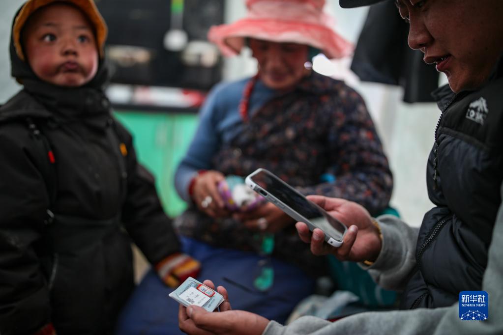 在西藏那曲市比如縣良曲鄉(xiāng)然木塘村蟲草采集點,工作人員在幫助牧民其美嘎德進行蟲草采集登記,以便進行總量統(tǒng)計(5月25日攝)。新華社記者 姜帆 攝