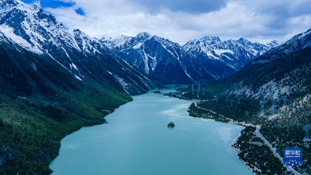 這是5月30日拍攝的然烏湖風光(無人機照片)。新華社記者 周荻瀟 攝