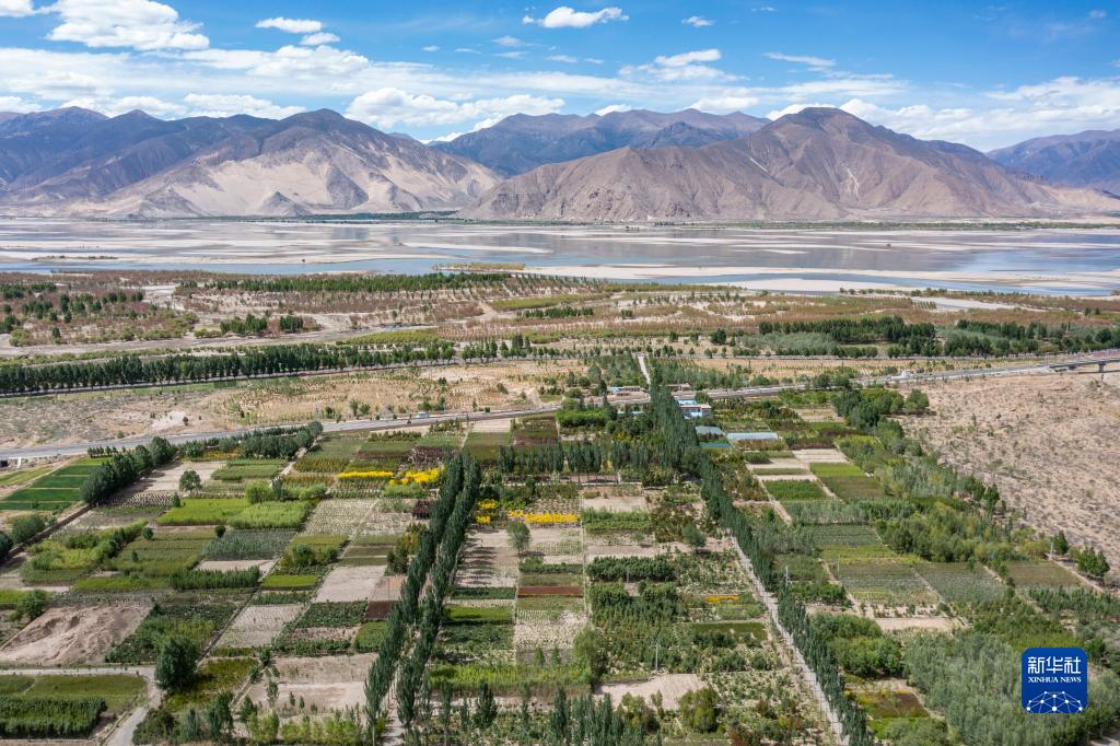 這是邊久經(jīng)營的位于西藏山南市扎囊縣的苗圃,這里曾經(jīng)是一片沙礫地(5月27日攝,無人機(jī)照片)。新華社記者 孫非 攝