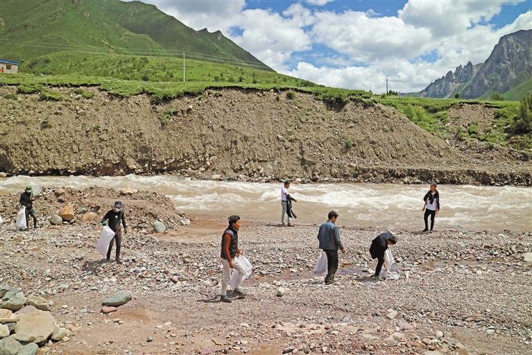 圖為昌都市水利局組織人員對(duì)嘎曲河道垃圾進(jìn)行清理。(圖片由昌都市水利局提供)
