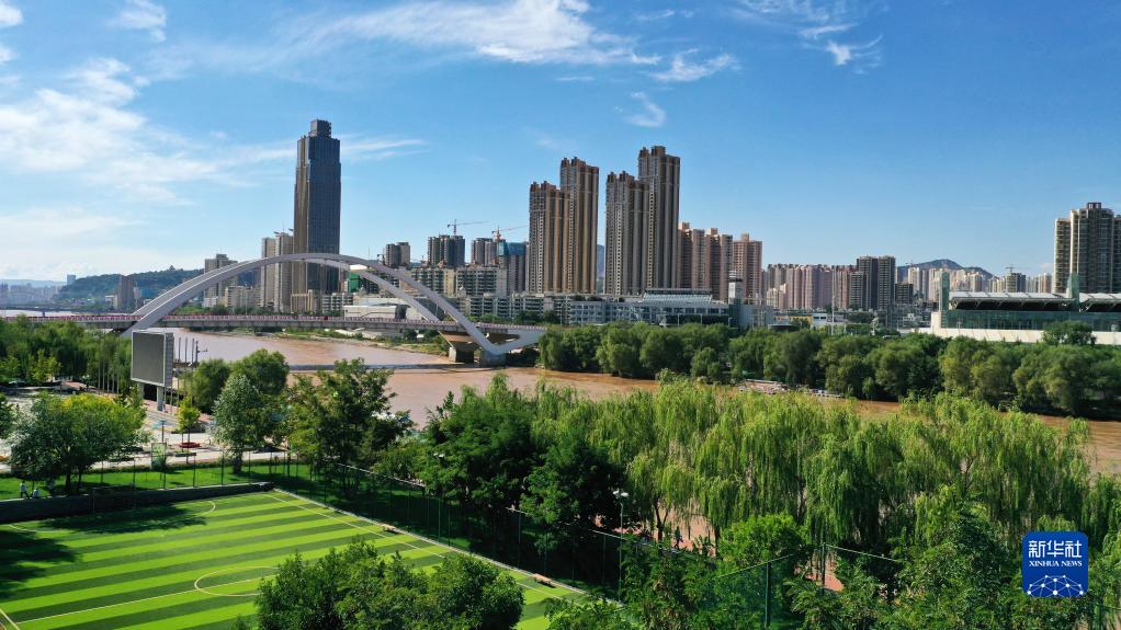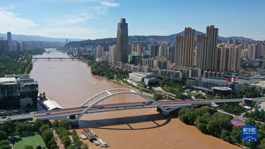 這是在甘肅省蘭州市拍攝的黃河兩岸城市風(fēng)光(9月5日攝,無(wú)人機(jī)照片)。新華社記者 陳斌 攝