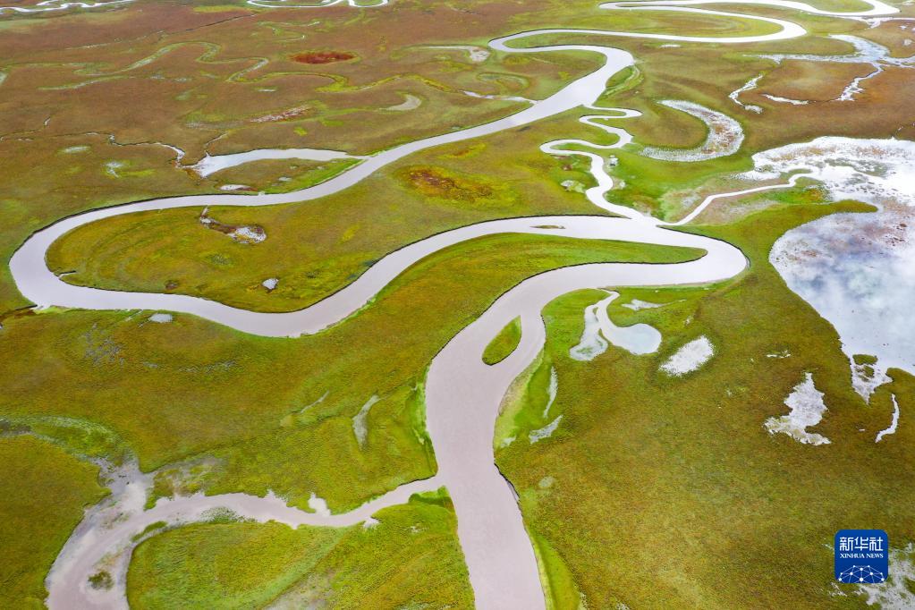 9月17日拍攝的阿萬(wàn)倉(cāng)濕地風(fēng)光(無(wú)人機(jī)照片)。新華社記者 郎兵兵 攝