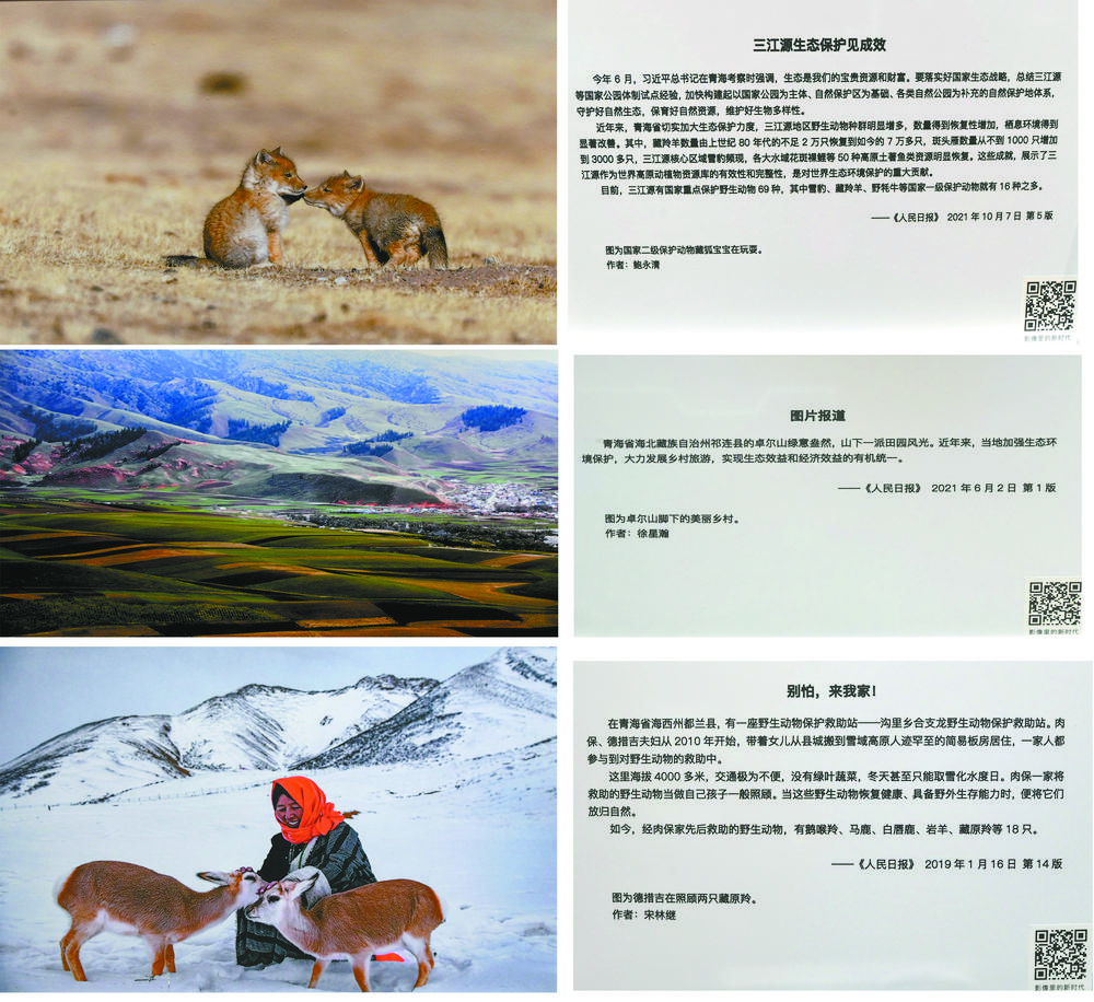 兩只憨態(tài)可掬的藏狐寶寶、卓爾山腳下的美麗鄉(xiāng)村、人與自然和諧共生的美好畫面……黨的二十大新聞中心融媒體體驗(yàn)區(qū)互動(dòng)展示墻上三張反映青海生態(tài)的照片,吸引了境內(nèi)外媒體記者的關(guān)注。 本報(bào)記者 祁國(guó)彪 魏慧敏 攝